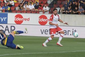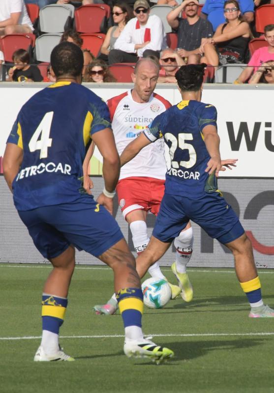 Trois nouvelles recrues du Tyrol du Sud se sont notamment illustrées : Filipe Bordon a mené la défense, l'attaquant Jonathan Italeng a menacé d'une tête plongeante, et Mamadou Coulibaly a délivré une passe décisive parfaite pour l'ouverture du score de Daniele Casiraghi (1-0). Casiraghi a inscrit le but d'une frappe directe (9e). Casiraghi a également été mis en lumière à la 30e minute, son coup franc des 30 mètres de distance ayant heurté la barre transversale.Après la pause, Vérone, avec à sa tête l'ancien joueur du Hertha et de Schalke, Suat Serdar, a pris le contrôle du match. Cela s'explique en partie par l'égalisation du dernier joueur brésilien de Vérone, Giovane, à la 46e minute, portant le score à 1-1. Le FCS, qui avait procédé à un remplacement complet à la mi-temps, a désormais adopté un jeu plus défensif.