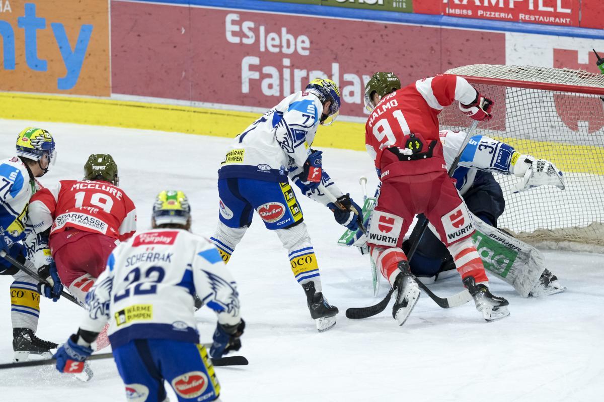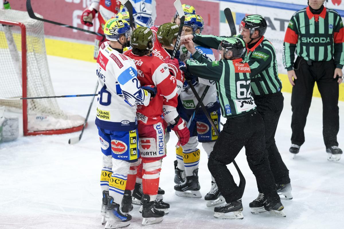 Le tollé | Après la première pause, les Foxes pénètrent dans le tiers offensif avec une véhémence extrême, mais le ballon ne veut tout simplement pas entrer dans le coin - jusqu'à ce que Simon Bourque envoie un tir puissant dans le filet (30'). Maintenant, les fans tombent dans les bras les uns des autres avec soulagement. |